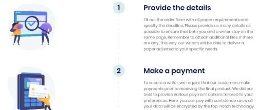 Ordering process is what JustBuyEssay gets right. It’s super easy. If you have ever used online writing services, steps will be familiar to you. First, you complete an online order form, specifying your parameters (e.g., type of work, academic level, deadline, and number of pages. Based on your entries, the website calculates price, which changes if you add extra paid services. You can then set up your account and make payment. You can pay with debit or credit cards, as well as Apply Pay. My JustBuyEssay.com review did not find any major glitches or delays in ordering process.