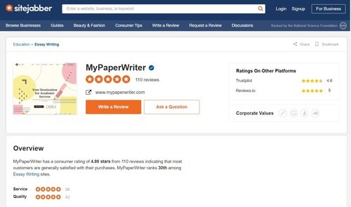 MyPaperWriter reviews on SiteJabber are mostly positive. A lot of people are fully satisfied with this service, while certain others don't praise their writing quality, but command them for mitigating any issues fast. However, there are a few people who are extremely dissatisfied with their work.